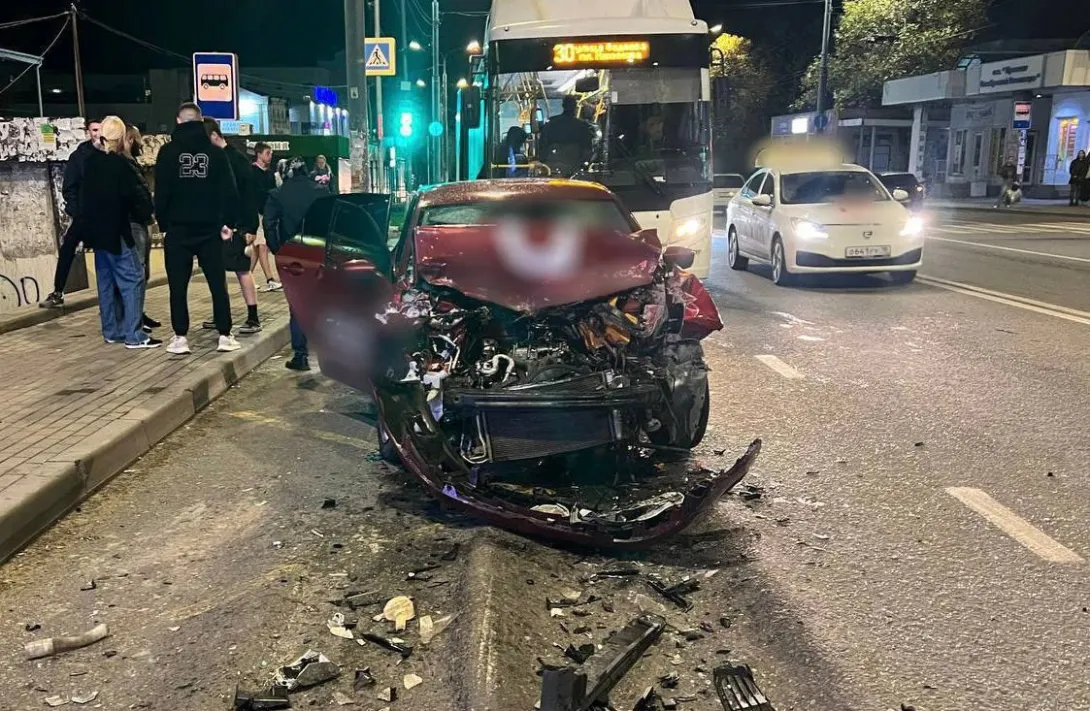Вечером в субботу, 11 октября, на остановке общественного транспорта «Проспект Октябрьской Революции» произошла жёсткая авария, в результате которой легковой автомобиль остался без передней части. О происшествии в редакцию сообщил корреспондент ForPost.