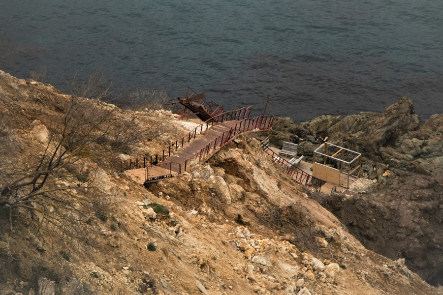 На Фиоленте сошел очередной оползень, снова уничтожив лестницу, ведущую на популярный Царский пляж. Об этом сообщили севастопольцы в социальных сетях.