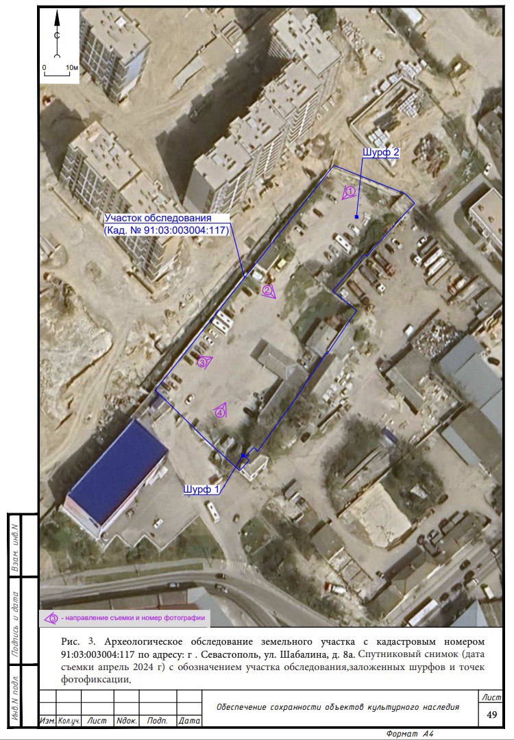 Экспертиза проводилась с 17 по 20 января 2026 года в Севастополе по заказу ООО «СНИПГРАД». Работы выполняло ООО «Археологические и междисциплинарные исследования». Специалисты провели археологическую разведку, визуальный осмотр территории и заложили два разведочных шурфа. По итогам обследования новых объектов археологического наследия обнаружено не было.