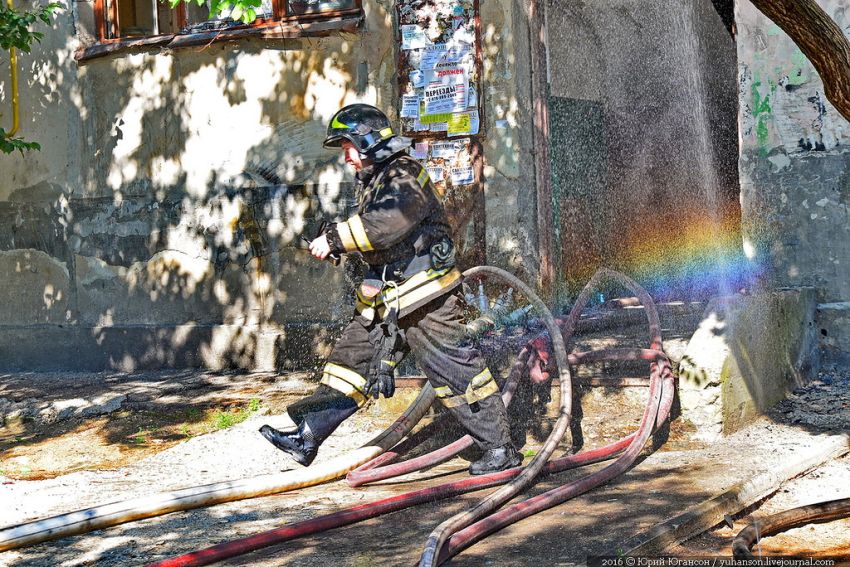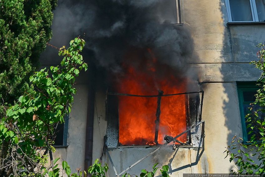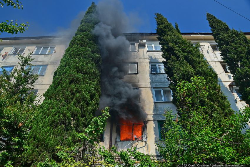 В многоквартирном доме на улице Героев Подводников, 8 произошёл пожар – горела квартира на втором этаже. Из неё дым и огонь вырывались через окно и грозились перекинуться на верхние этажи. Об этом написал севастопольский фотограф Юрий Югансон на своей странице в «Живом журнале».