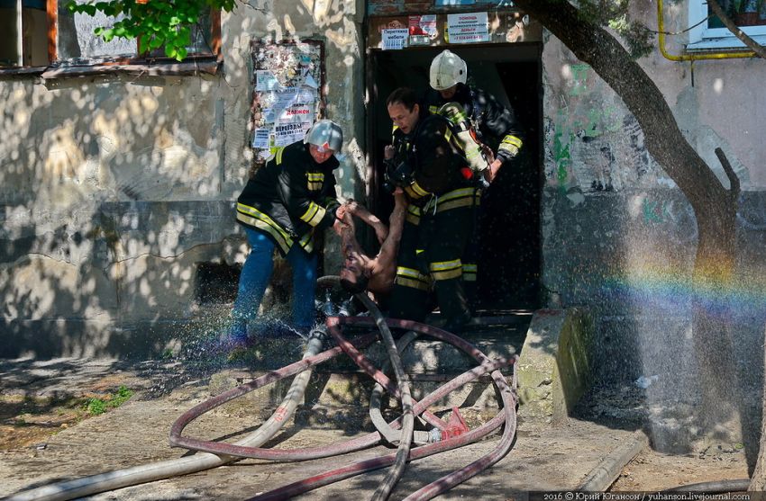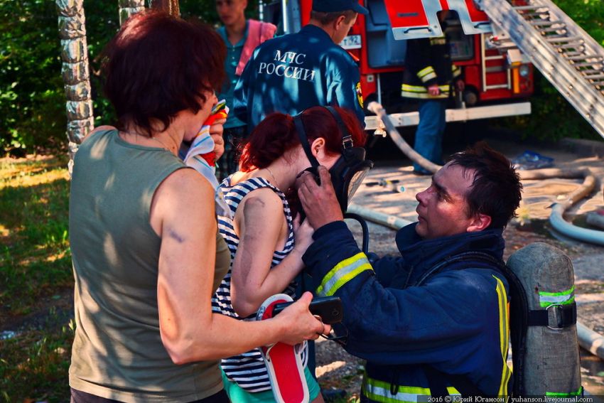Он рассказал, что дым быстро наполнил подъезд и люди, живущие в доме, были отрезаны от выхода на улицу. Приехавшие на вызов о помощи пожарные сработали чётко и слажено, пожар был локализован в считанные минуты, после чего спасатели эвакуировали жильцов с верхних этажей. Сейчас пожар полностью ликвидирован, но жильцам предстоит серьёзный ремонт.