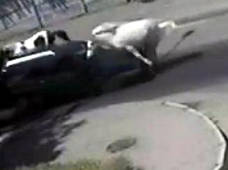 На появившейся сегодня в интернете видеозаписи с внешней камеры наблюдения одного из зданий видно, что животное пересекало дорогу хоть и по пешеходному переходу, но без сопровождения хозяина. О том, кто стал виновником ДТП — человек или животное, говорить сложно.