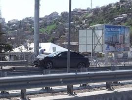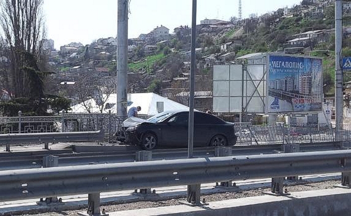 Иномарка тёмного цвета, управляемая, предположительно, водителем, страдающим эпилепсией, врезалась в ограждение на железнодорожном мосту.