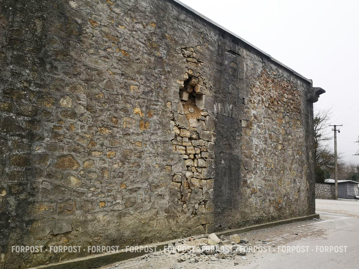 По присланным в редакцию фотографиям видно, что внешняя стена памятника со стороны проезжей части начала осыпаться. Камни вываливаются прямо на дорогу, а участок под выпавшим фрагментом трескается и проседает. Если ничего не предпринять, разрушение может пойти дальше.