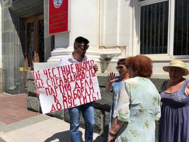 У стен Севастопольской городской избирательной комиссии прошли одиночные пикеты, организованные региональным отделением «Партии Дела».