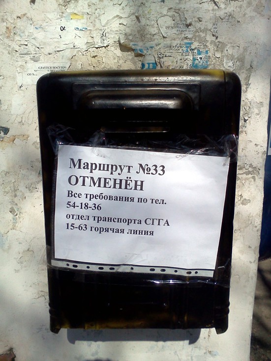 Но недолго радовались жители Стрелецкой. На днях на остановке появилось объявление «Маршрут №33 отменен. Все требования по тел.54-18-36».