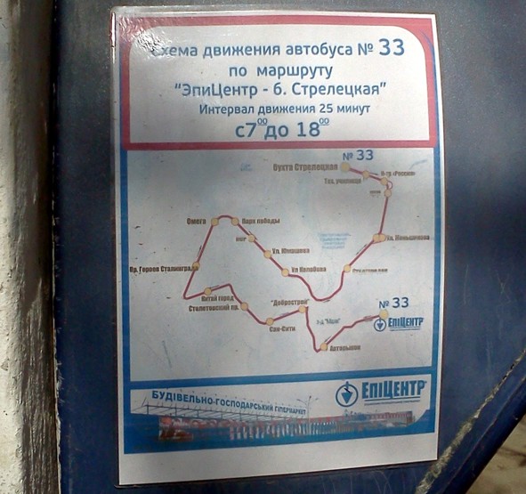 Воспользовалась 33 маршрутом один раз Это было около 11 дня Ехали в автобусе вчетвером Оттуда-из Эпицентра-вдвоем В Эпицентре нечего делать Все дороже чем в других строительных магазинах Нужно ведь отбить строительство магазина и дороги Другое дело что удобно проживающим на ПОРе и в Камышовой Ну и как всегда-махнули шашкой-и нет маршрута