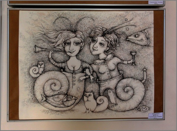 Автор профессионально и виртуозно владеет многими техниками: живопись, графика, прикладное искусство. Работы выполнены с любовью. Доброта, исходящая из сердца, ощущается в каждой работе. Забавные на первый взгляд сюжеты «Двое в лодке и груша», «Заводной кавалер», «Я – птица», «Счастливая звезда» пронизаны философией, космической взаимосвязью всего сущего - людей, животных, растений.