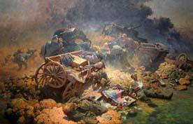 Юрий Волков является одним из выдающихся мастеров батальной живописи ХХ века. Его картины лишены бравурности и напыщенности. Он отражал войну такой, какой она была, без прикрас и надумок, со всей трагичностью и драматизмом момента.