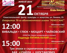 В воскресенье, 21 октября, в концертном зале Севастопольского Центра культуры и искусства состоится торжественное открытие 76-го абонементного сезона классической музыки «РЕНЕССАНС».