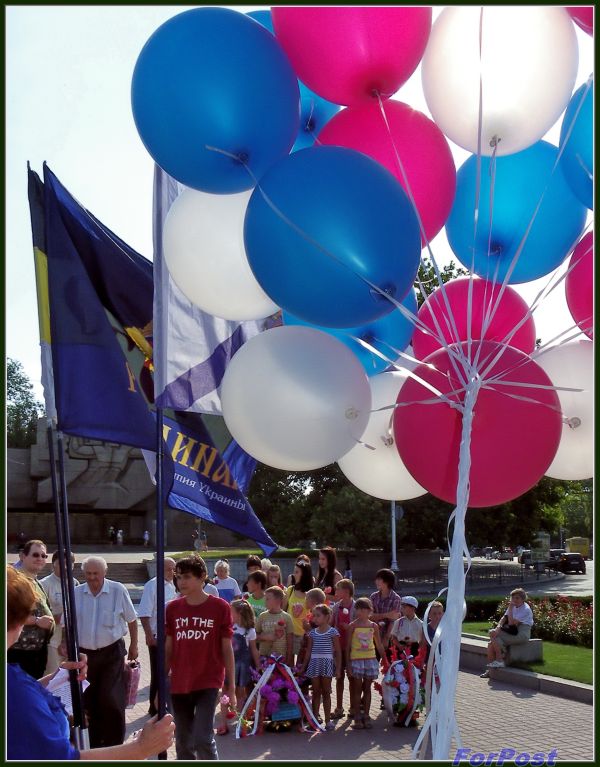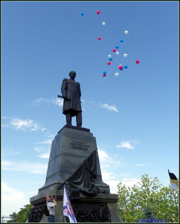 Ещё издали у памятника были видны воздушные шары цветов Российского триколора.