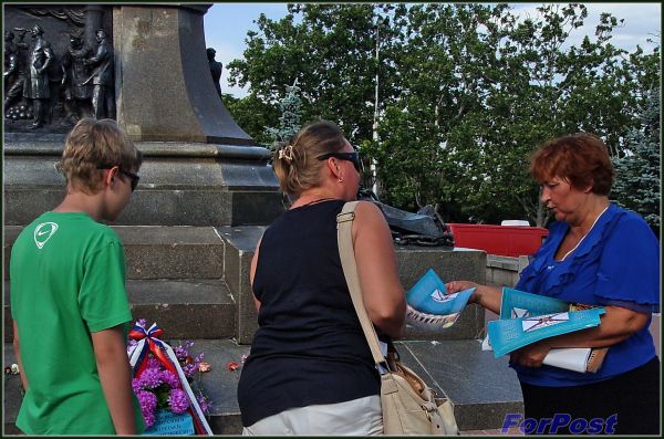 Прохожим раздавались буклеты, выпущенные Русской общиной специально ко двум вышеназванным событиям.