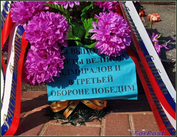 Татьяна Александровна зачитала поздравление от члена правительственной комиссии РФ по делам соотечественников за рубежом Константина Затулина, пожелавшего всему населению Севастополя и личному составу Черноморского флота мира, согласия, успехов и процветания, поблагодарила его за оказание всесторонней помощи в работе "Русской общины Севастополя" и выразила надежду на то, что скульптуру Адмирала рано или поздно развернут так, как положено: лицом к морю, тогда и в нашей жизни всё коренным образом изменится к лучшему.