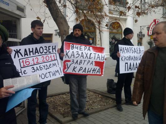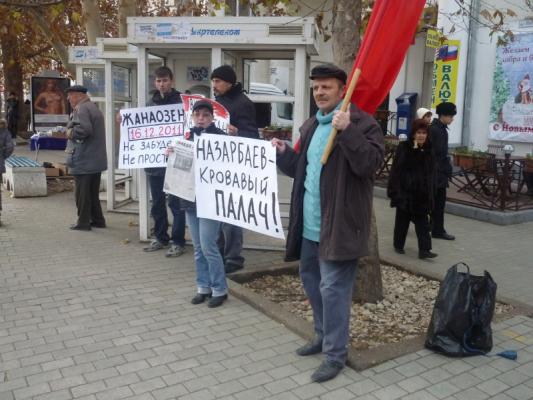 Активисты провели информационный пикет в районе пл. Лазарева. Он держали в руках плакаты с лозунгами «Жанаозен 16.12.2011 не забудем не простим!», «Назарбаев кровавый палач!», «Вчера Казахстан, завтра Украина». Спартаковцы распространяли свою газету «Правда.info», заглавная статья которой посвящена событиям в Жанаозене.