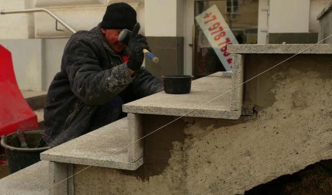 Как стало понятно, выполнять одну работу дважды не станут – но и сделать всё сразу не получится. Сегодня задача подрядчика (ООО «ГорСтройПроект») – возрождение тротуара и крылец высотой до 3 ступеней без наличия архитектурных форм.