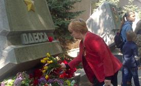 Севастопольцы возложили цветы и зажгли свечи у памятного знака «Одесса» на аллее городов-героев.