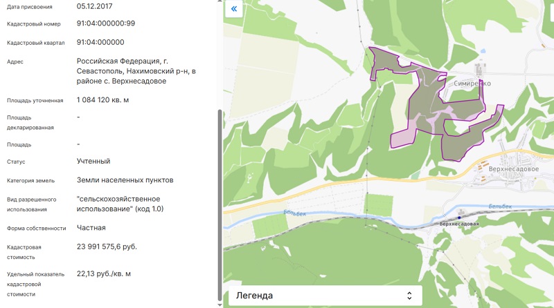 Указанный участок площадью 108 га на кадастровой карте действительно значится в частной собственности с 2017 года и предназначен под сельскохозяйственное использование.