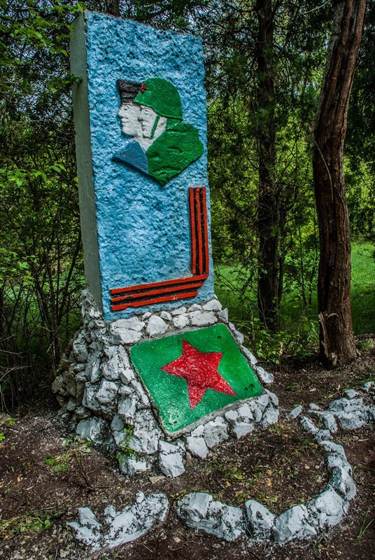 Вот что я вам скажу. Этот памятник стоит возле дороги, которая идёт на объект "Сотка" от села оборонное в гору через лес. Так вот я там часто гуляю и этот памятник стоял уже несколько лет облупленный и облезлый ,и никому до него не было дела. Ну покрасили его ребята как смогли, ничего в этом плохого не вижу.
