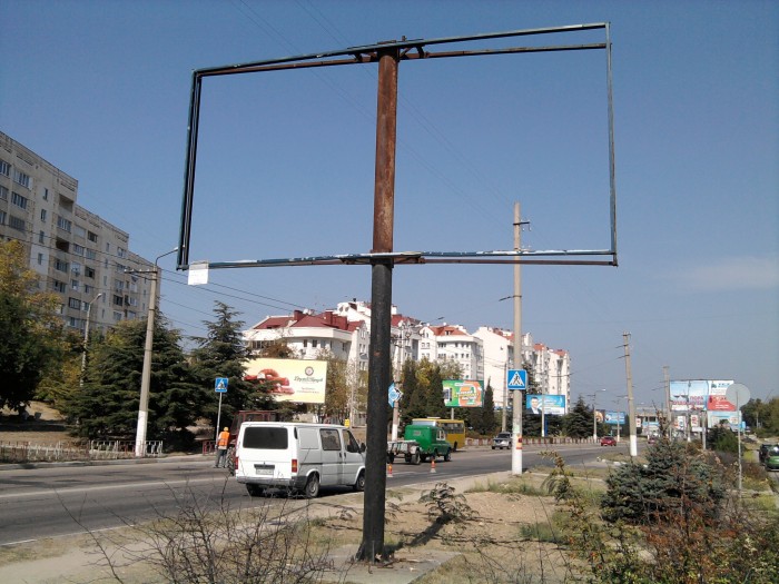 Утро 19 сентября. Проспект Героев Сталинграда. Спешащие на работу севастопольцы обнаружили вместо борда, на котором еще вчера была агитация кандидата в народные депутаты от партии «Русский блок», лишь железный остов.