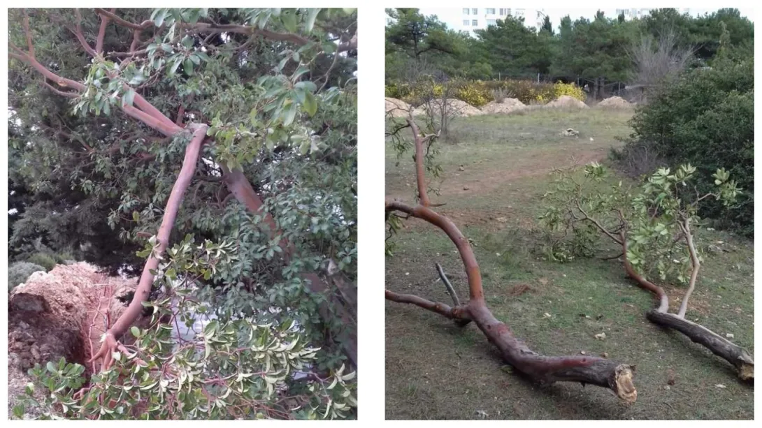 «Они сломаны или выкорчеваны под корень, потому что там производились экскаваторные работы», — говорит женщина о ранее росшем в парке земляничнике, внесённом в Красную книгу Крыма, также известном среди местного населения как «бесстыдница» или «курортница».