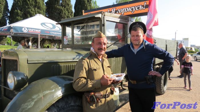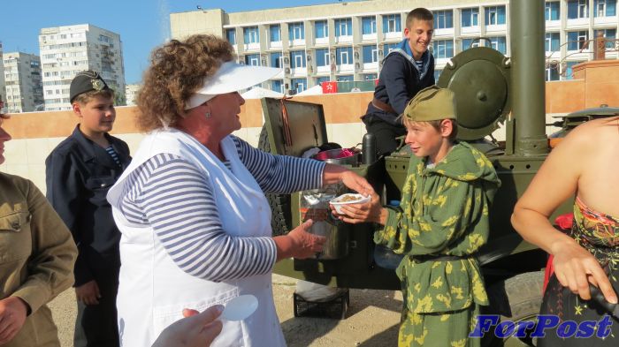 В заключительный день фестиваля на площади Центра развернулась полевая кухня и выставка ретро-техники времен Второй мировой войны, которую представил известный севастопольский военно-исторический клуб «Красная Армия».