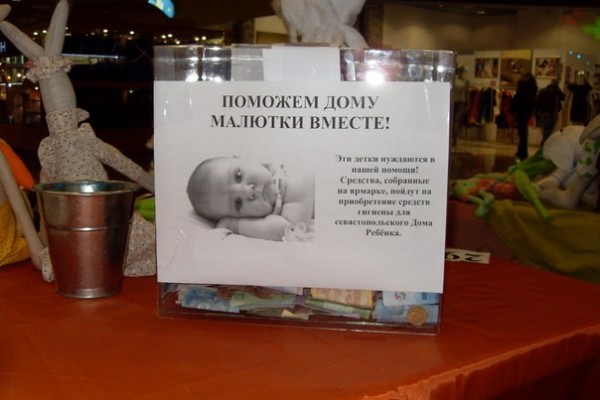 На ярмарке осуществлялся сбор средств на помощь Дому Ребёнка при поддержке Фонда социально-экономического развития г. Севастополя. Совместными усилиями было собрано 1139,75 грн. На эту сумму были приобретены средства гигиены и переданы Дому Ребёнка.