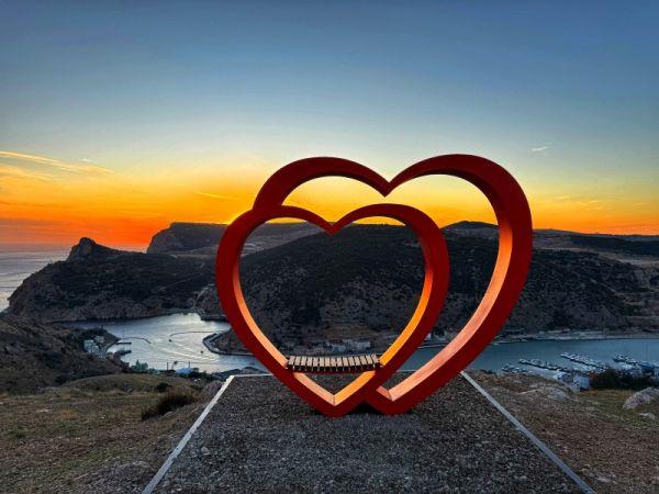 В Севастополе на горе Спилия над Балаклавой установили инсталляцию в виде двух сердец. Об этом сообщила депутат Госдумы от Севастополя Татьяна Лобач, которую создатели инсталляции пригласили на открытие. Но простояла новая фотозона недолго.