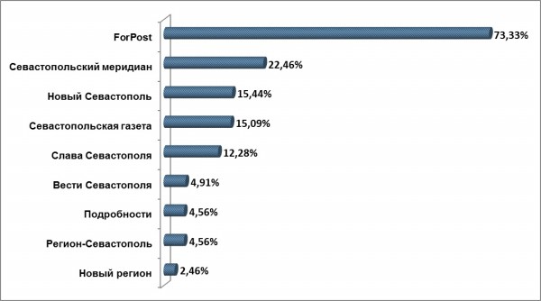 Информационный сайт «ForPost» получил 73% и получил первое место в рейтинге новостных web-ресурсов, опередив ближайшего конкурента на 50%. Севастопольский меридиан получил второе место (22%) и третье место занял новостной web-сайт «Новый Севастополь», информационное агентство «Новый регион» получило последнее место с рейтингом 2.46%.
