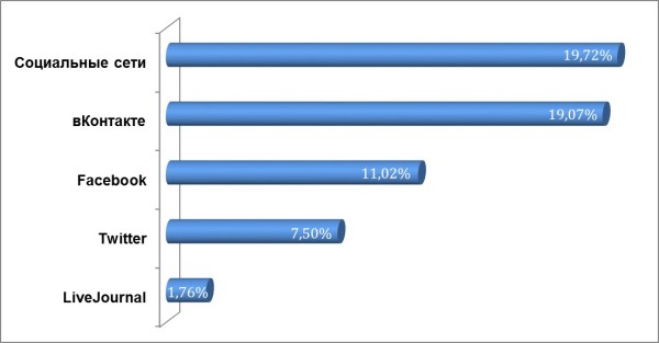 Социальные сети активно врываются в жизнь севастопольцев и уже более 20% пользуются Social Network для получения новостной информации. Бесспорным лидером, занявшим 1 место, стала социальная сеть «вКонтакте» с уровнем посещаемости 19% от числа опрошенных респондентов. Активные тенденции роста демонстрирует Facebook – 11%, Twitter – 7,5%. Самый низкий уровень посещаемости демонстрирует Живой журнал (1,76%) и с учётом активного развития Facebook, теряет активных и авторитетных блоггеров. Ярким примером выступает известный журналист и главный редактор «Історичної правди» Вахтанг Кипиани и др.