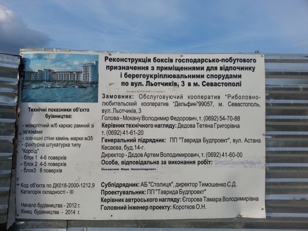 Председателю инициативной группы уже позвонили из кооператива "Дельфин" и очень хотят в присутствии их юриста и адвоката рассказать о том, что это самое законное строительство в городе:) Сообщили, что для волнений нет оснований и все, что строится, это конечно на благо простых севастопольцев. Конечно простые севстопольцы с вниманием выслушают презентацию "скромного" бизнесс-проекта, но выводы сделают самостоятельно...