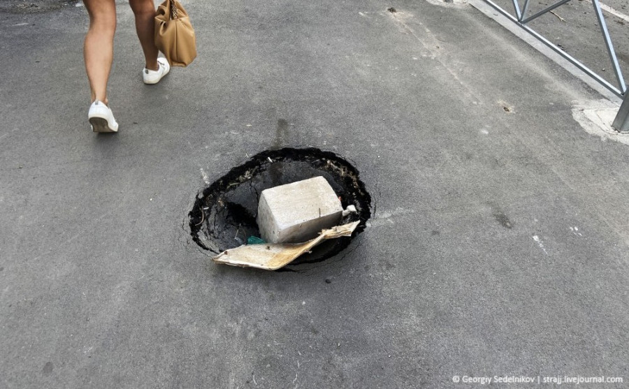 Да, какой-то сюр - люк находится на одном уровне, асфальт уложили на другом ( на эти 15 сантиметров выше). Когда осознали, что сделали что-то не так, ничего лучшего не придумали, как на крышку люка сверху на эти 15 сантиметров насыпать песочка, замаскировав ямку на дороге. Через месяц весь песочек разлетелся в разные строны и снова появилась эта дыра. Я уже не говорю, как безобразно отремонтировали дворы на ул. Репина - 26, 28, 32
