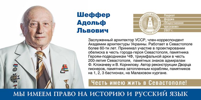 А Адольф Львович вообще удивительный человек трудно найти в Севастополе значительный объект, чтоб там не участвовал наш архитектор, он долго работал в Военморпроекте- и город ему обязан не только памятниками
