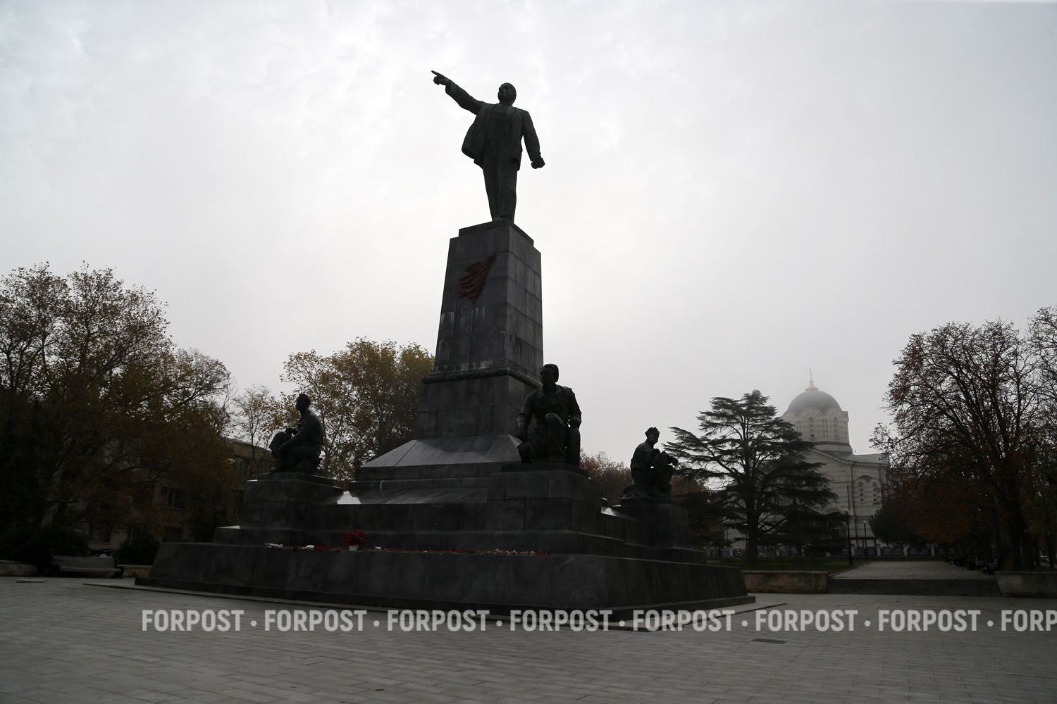 Царство тумана за морской библиотекой: окутанный пеленой Ленин и едва просматриваемая ротонда одной из «сталинок» центральной горки.