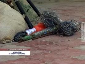 Не все удочки одинаково полезны. Среди орудий лова есть и те, пользоваться которыми запрещено правилами любительского и спортивного рыболовства. Такие удочки и сети изымаются и до решения суда хранятся на специальном складе. 20-го июня здесь собралась комиссия, в составе которой – сотрудники исполнительной службы, милиции, районной администрации. Для того, чтобы уничтожить запрещенные орудия рыбной ловли, изъятые в ходе рейдов госрыбоохраны.
