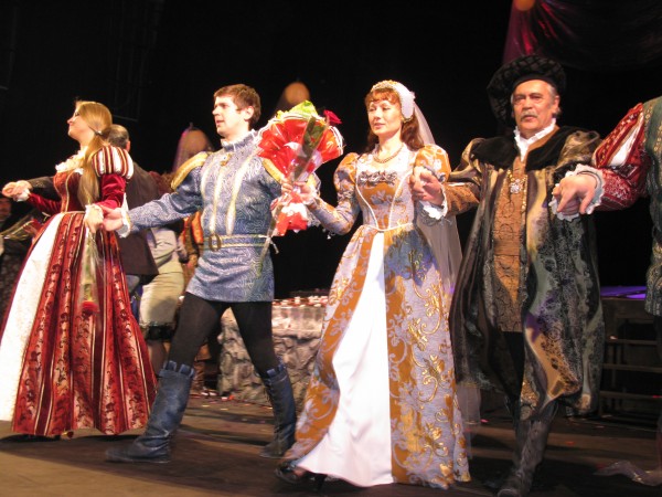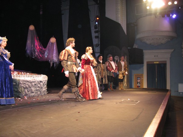 "Укрощение строптивой" - пьеса написанная в 1593 или 1594 году. Но, похоже, она бессмертна и не потеряла своей актуальности и сегодня. Во флотском театре она идет в двух действиях. В первый премьерный день основными зрителями пьесы стали участники 2-й Международной практической конференции «Русский язык – язык межнационального общения».