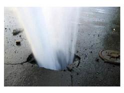 Та это судя по фото не прорвало, это не напор. Вот у нас прорвало так прорвало. Струя кипятка вырвалась из под земли - да в небо, а там косяк уток. Так народ бегал с кастрюлями, а в них утки падали варёные уже. Фонтан такое рукотворное озеро вырыл, что люди туда до холодов ходили купаться и загорать, да на водных лыжах покататься. Но с холодами пришёл мороз и прорыв ликвидировал. Фонтан иссяк. Люди упёрлись локтями в подоконники и выглядывают весну, а с ней и перелётных уток.
