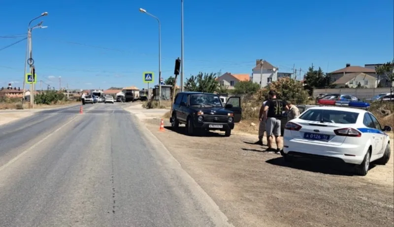 В первоисточнике "По предварительной информации, сегодня в 11 часов 15 минут 34-летний водитель автомобиля Lada Niva на 1 км + 800 м автодороги «Севастополь-порт Камышовая бухта-бухта Казачья», не имея права управления транспортным средством, выехал на полосу встречного движения, где произвел наезд на 13-летнюю девочку-пешехода, которая переходила проезжую часть дороги по нерегулируемому пешеходному переходу справа налево по ходу движения автомобиля.