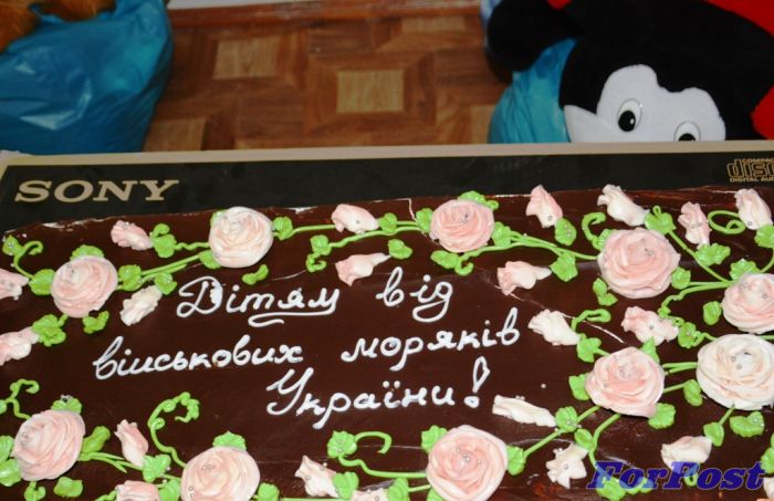 Воспитанникам детского дома от Командования Военно-Морских Сил Вооруженных Сил Украины подарен современный музыкальный центр. Специально для ребятишек учебно-воспитательного учреждения военные моряки Украины испекли огромный именной пирог.