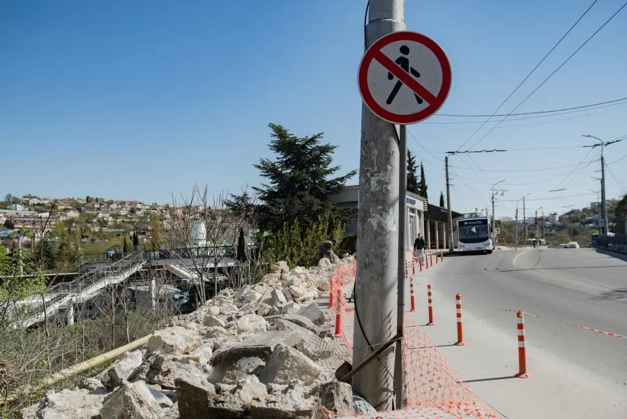 Подпорная стена над севастопольским вокзалом осыпалась в конце 2024-го года. Тогда опасное место просто перекрыли сигнальной красно-белой лентой.