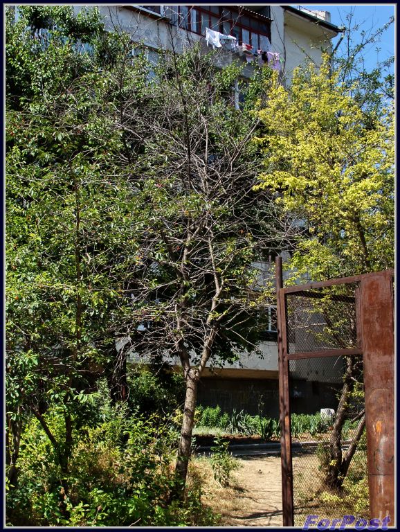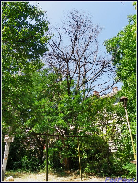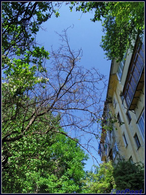 Хотелось бы узнать, кто так "позаботился", по-моему, в феврале о ещё недавно роскошном айланте, растущем (?) на перекрёстке улиц Адмирала Октябрьского и Очаковцев, что он до сих пор не выпустил ни одного зелёного листочка: