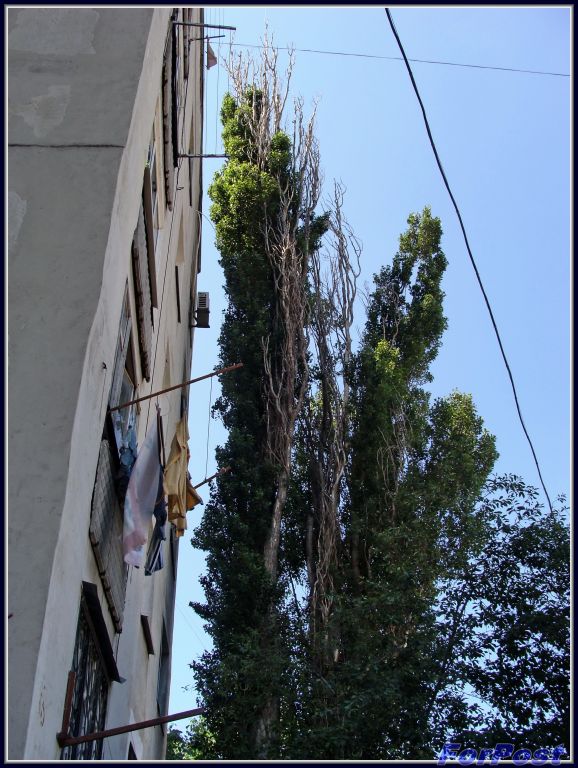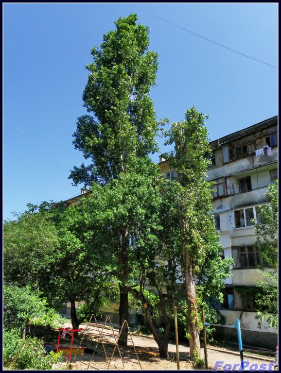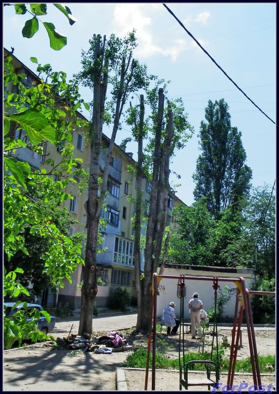 to Zulal (Севастополь) Опять показуха, тополь возле к/т Украина еще в феврале 2013 года обрезали!!! Что значит, показуха? С чьей стороны? Разве я написала, что этот тополь обрЕзали именно в июне? Айлант тоже обрезАли в феврале. И что? По сравнению с тем, что такой масштабной обрезкой не занимались практически 5 лет, в течение пяти месяцев - считай одновремЕнно.