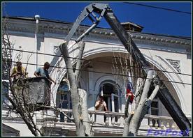 Опять показуха, тополь возле к/т "Украина" еще в феврале 2013 года обрезали!!!