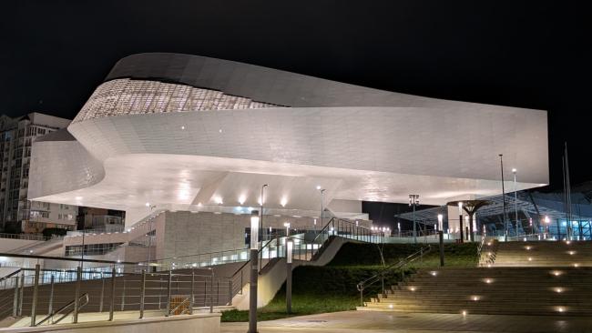 Общая площадь комплекса превышает 14 тысяч квадратных метров. Высота устойчивого к сейсмическим колебаниям здания достигает 34 метров. Оно состоит из пяти уровней: двух подземных и трёх надземных этажей, которые одновременно могут вместить до 800 посетителей.