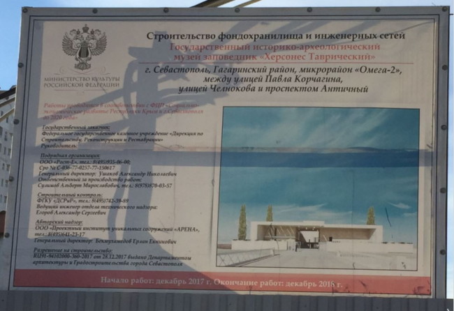 Напомним, о планах построить в Севастополе фондохранилище для музея-заповедника стало известно еще в сентябре 2016 года. Тогдашний руководитель Херсонеса Светлана Мельникова утверждала, что без строительства объекта дальнейшее развитие заповедника невозможно.