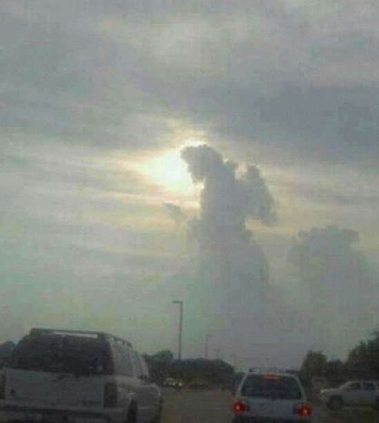 Это облако из-за необычной подсветки солнцем выглядело, словно некая огненная рука или кулак (кому как нравится). Блогеры тут же увидели в этом явлении знак свыше и вполне логично назвали феномен "Рукой Бога".