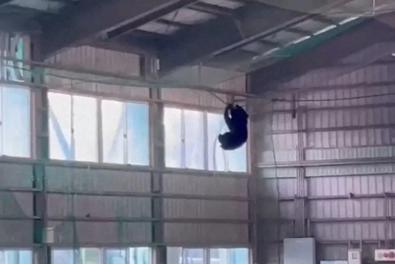 В спортивном зале элитной старшей школы Ямагата Токайского университета на севере Японии был замечен медведь, свисавший с сетки.