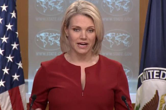 Журналистка российского Первого канала попыталась возразить, что на видео не было показано, что ракеты атакуют США. Услышав, что журналист представляет Россию, Науэрт отказалась отвечать на вопрос.