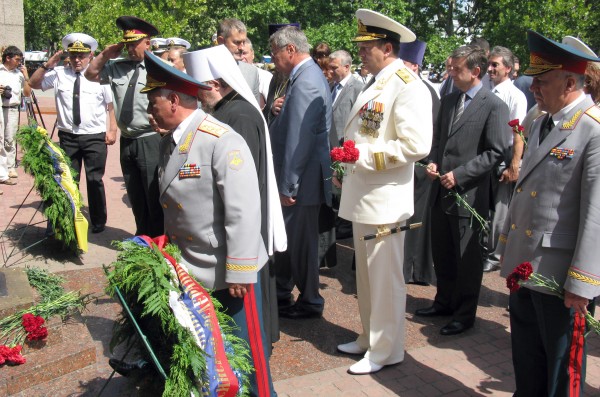 Утром в Свято-Владимирском соборе в Херсонесе прошел молебен. Память погибших горняков почтили глава администрации Президента Украины Сергей Левочкин, руководитель администрации Президента России Сергей Нарышкин, Чрезвычайный и Полномочный Посол РФ в Украине Михаил Зурабов, председатель Севастопольской городской государственной администрации Владимир Яцуба, председатель Севастопольского городского Совета Юрий Дойников, другие официальные лица. На скромные торжества по случаю Дня ВМФ России в Севастополь прибыли главы администраций президентов России и Украины Сергей Нарышкин и Сергей Левочкин, начальник Генерального штаба Вооруженных Сил России генерал армии Николай Макаров, начальник штаба Южного военного округа генерал-майор Николай Переслегин, начальник Генерального штаба Вооруженных Сил Украины генерал-полковник Григорий Педченко, Чрезвычайный и Полномочный посол РФ в Украине Михаил Зурабов,