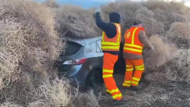 В американском штате Вашингтон тысячи перекати-поле неожиданно появились на шоссе. В ловушке оказались несколько автомобилей с людьми.