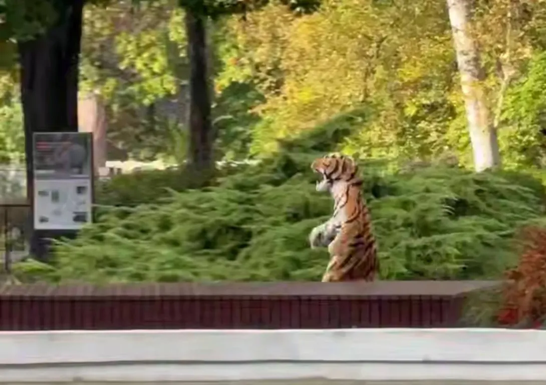 В Калининградском зоопарке прошли учения, на которых сотрудники отрабатывали действия по поимке сбежавшего животного. Для придания ситуации максимального реализма роль беглеца исполнил работник в костюме тигра.